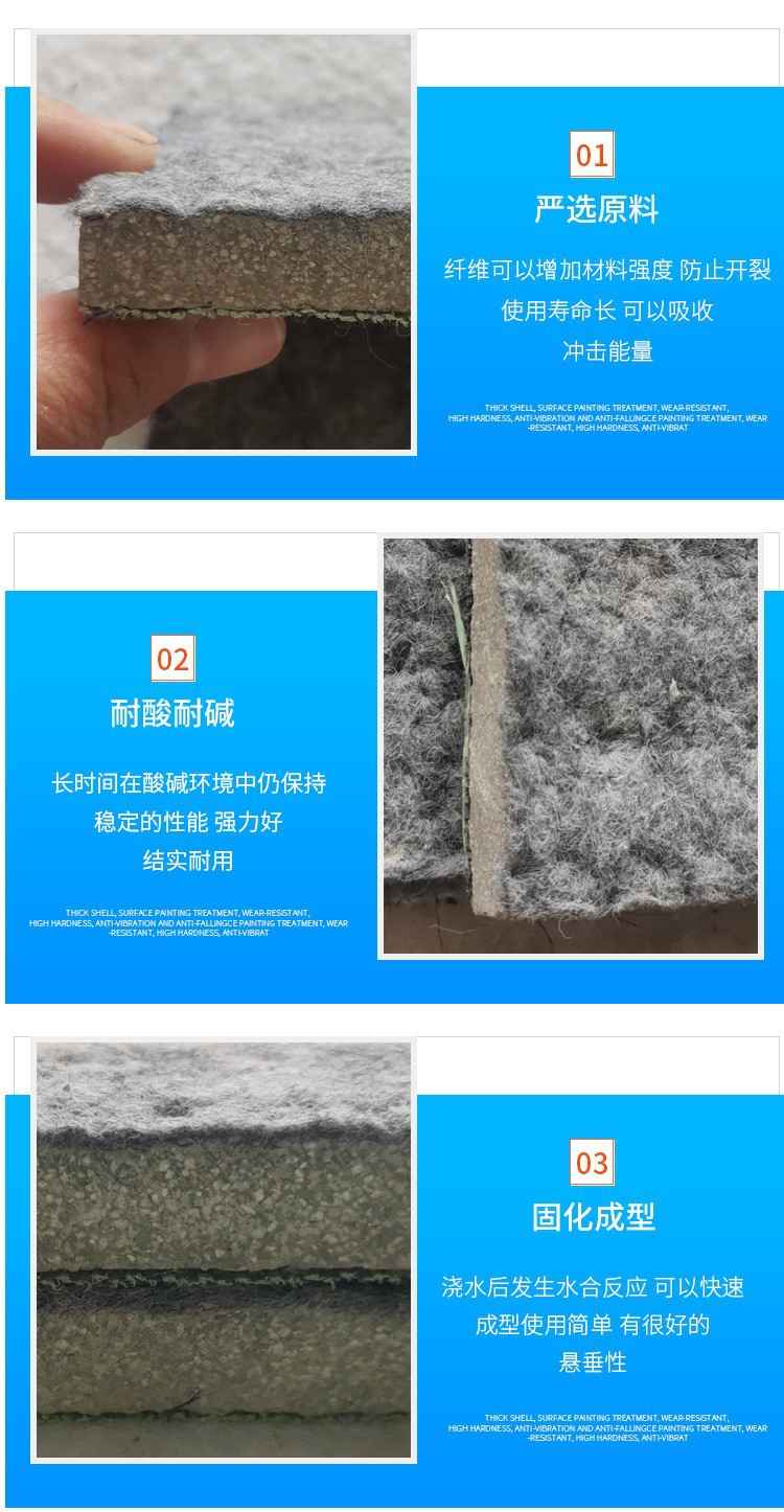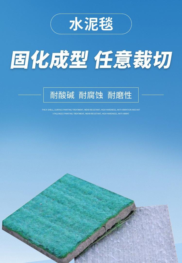 セメントブランケットは、コンクリートキャンバスとも呼ばれ、法面保護のための新しいタイプの複合土質材料です。多層繊維構造織物、セメント、砂で構成されています。水と反応して硬化し、非常に薄い防水・耐火性の耐久性コンクリート層を形成します。原材料と製造プロセスによりGとDに分けられ、用途に応じて厚さ4mmから16mmまであります。セメントブランケットは近年広く普及・応用されており、耐摩耗性、耐圧縮性、耐洗掘性、耐ひび割れ性などの特性を有しています。水産養殖、産業建設、水利プロジェクトなどで広く利用されています。